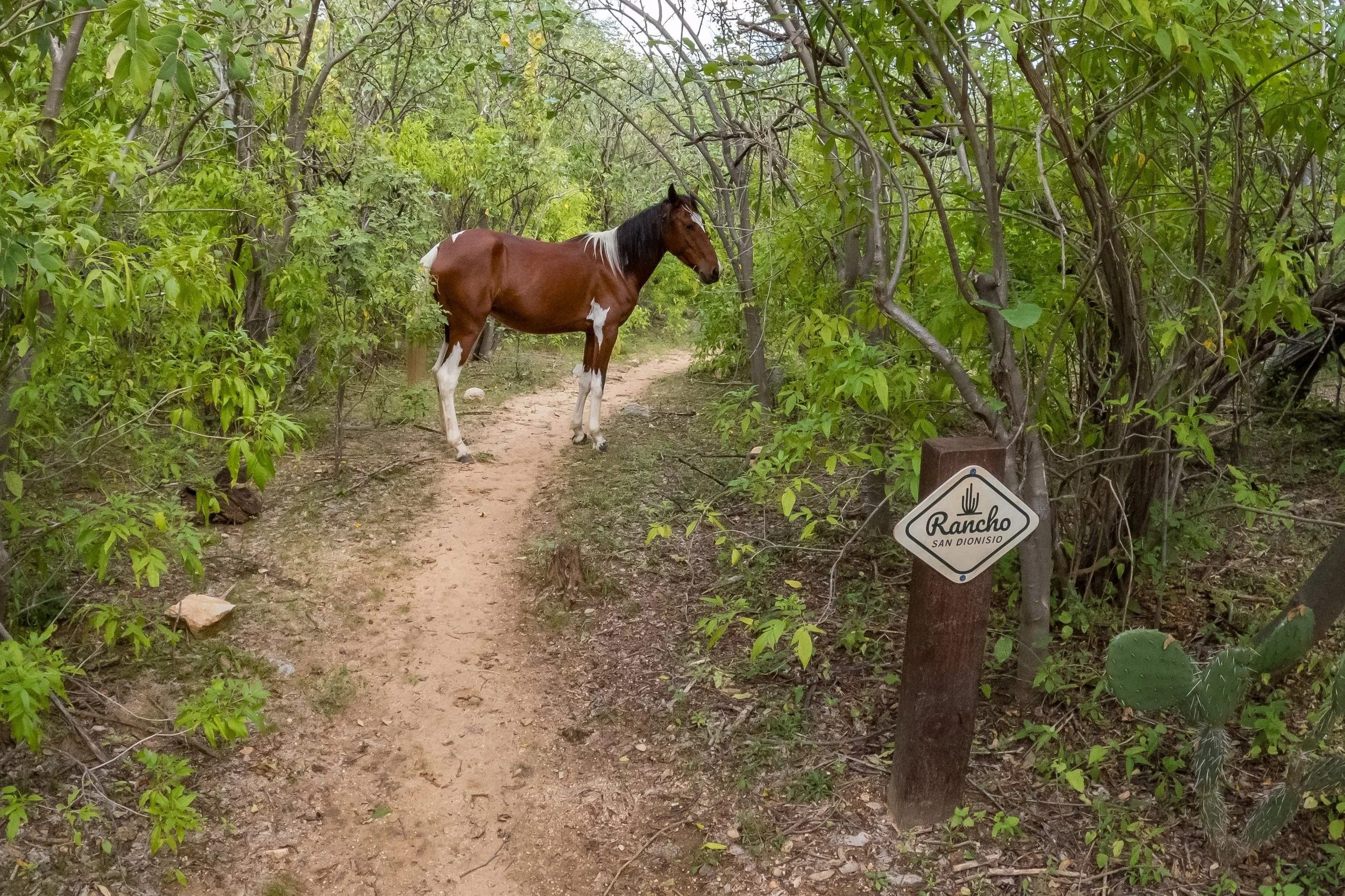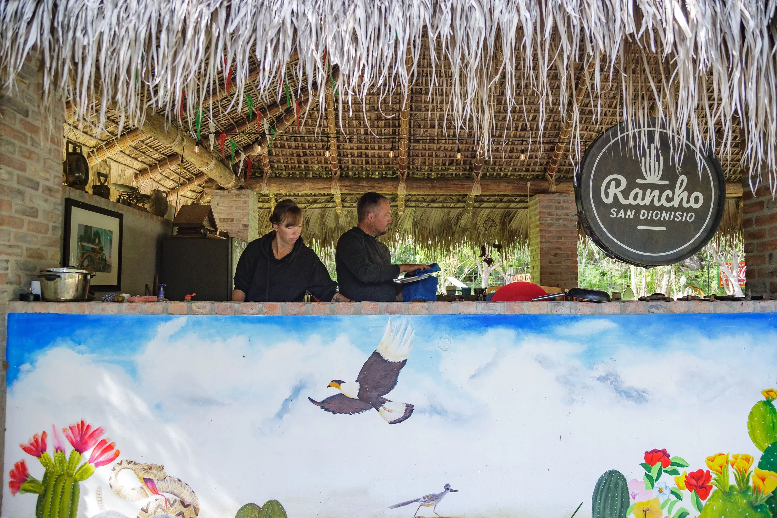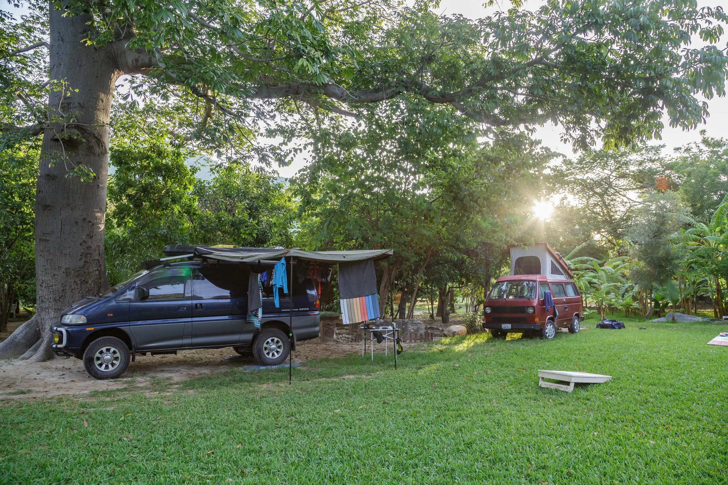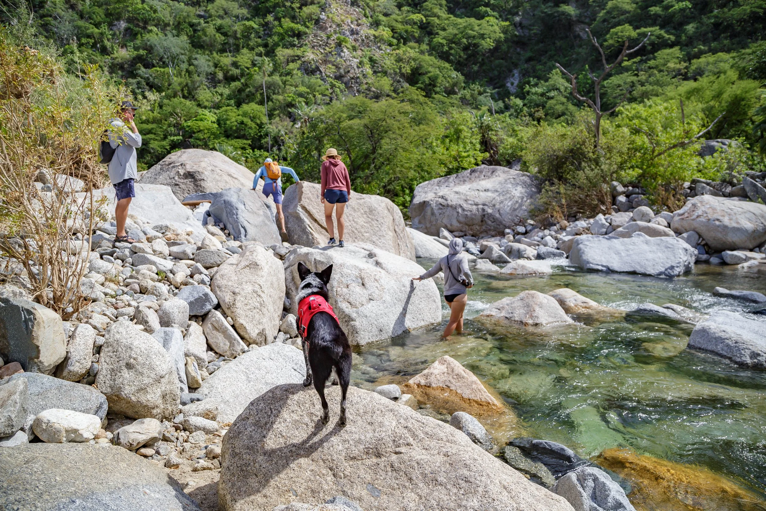 Arriving at the ranch, we were greeted by Isabel, one half of the owner-operator duo that runs the ranch. Her partner Clarence was out at the moment, so she got us settled at the best spot in the campground, close enough to the pavilion and bathrooms for convenience, but still privately nestled under a giant, ancient tree. Team VW arrived shortly after us, and Clarence gave us a property tour, showing off his very productive garden and all of the recent property improvements, including a beautiful open air communal kitchen, impeccable composting toilets, and the well manicured trail to the crystal clear river. The entire property is spectacular, and we had already decided to spend two nights there the moment we started driving through the canyon, regardless of what team VW had for an itinerary. Rancho San Dionisio is the kind of place that can make you change your plans - it’s our understanding that Clarence and Isabel were on a longterm PanAmerican roadtrip when the chance to invest in the land and rehabilitate the colonial area property was offered to them. The valley can enchant you right off your travels, pull you from the road and tie you to the land, it’s just that good. Our first night was very comfortable, complete with a communal dinner and a campfire, and only one death defying scare from Gracie as she eagerly investigated a giant scorpion in the open air kitchen. She had been trailing the critter, only a few inches from its arched tail, as it ran across the shiny cement floor, as if wondering Will you be my friend? No Gracie, no it will not be your friend.