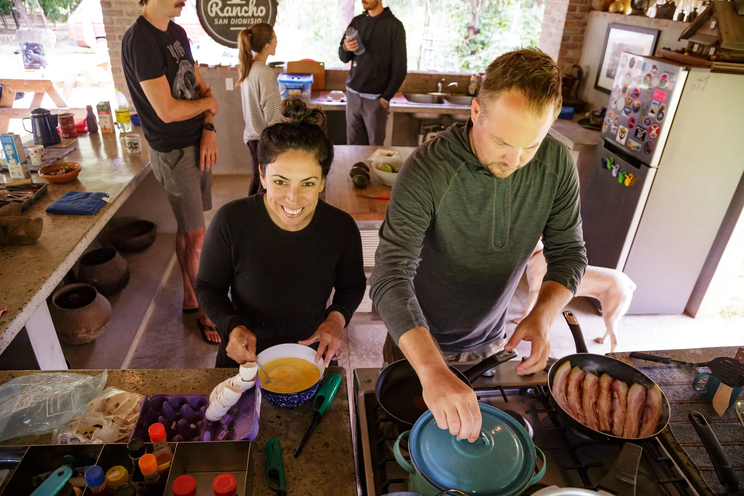 A dream-team in the kitchen making breakfast for the crew…including using the last of Ricky’s thick-cut bacon!