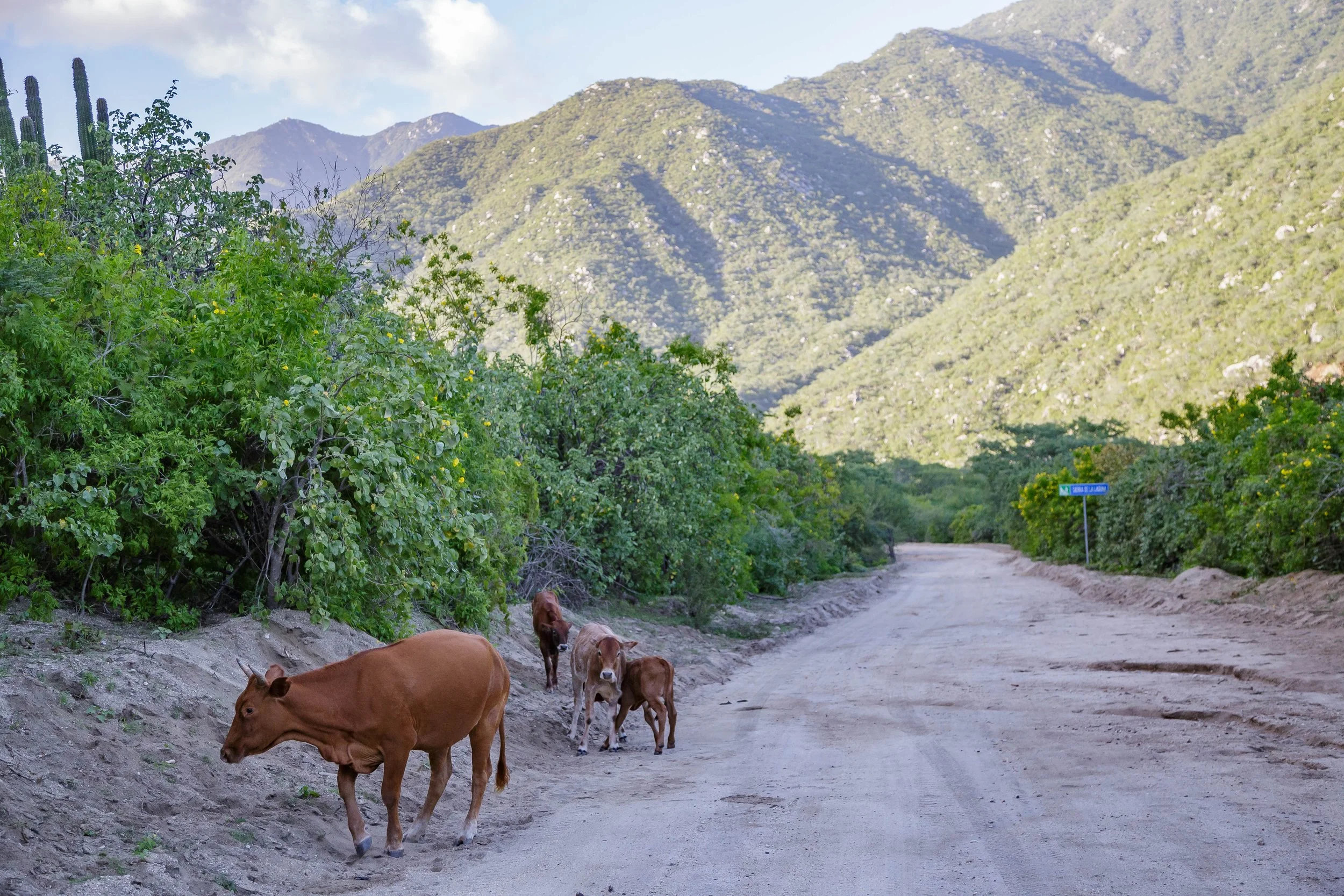 We only nearly died once on the way to Rancho San Dionisio, as the road would go from wide sand track to a single lane trail peppered with blind curves and boulders blocking the view of oncoming traffic. There weren’t many other trucks on the road, but it was quitting time and some of the workers were pretty eager to get to town, including one guy that was not expecting us, and had to slam on his brakes, throwing his little blue pickup into a four wheeled slide that put him dangerously close to Walter and even closer to the edge of the cliff that was the shoulder. Thankfully, no one was hurt and he sheepishly waved and smiled apologetically as we maneuvered around each other and continued on our way.