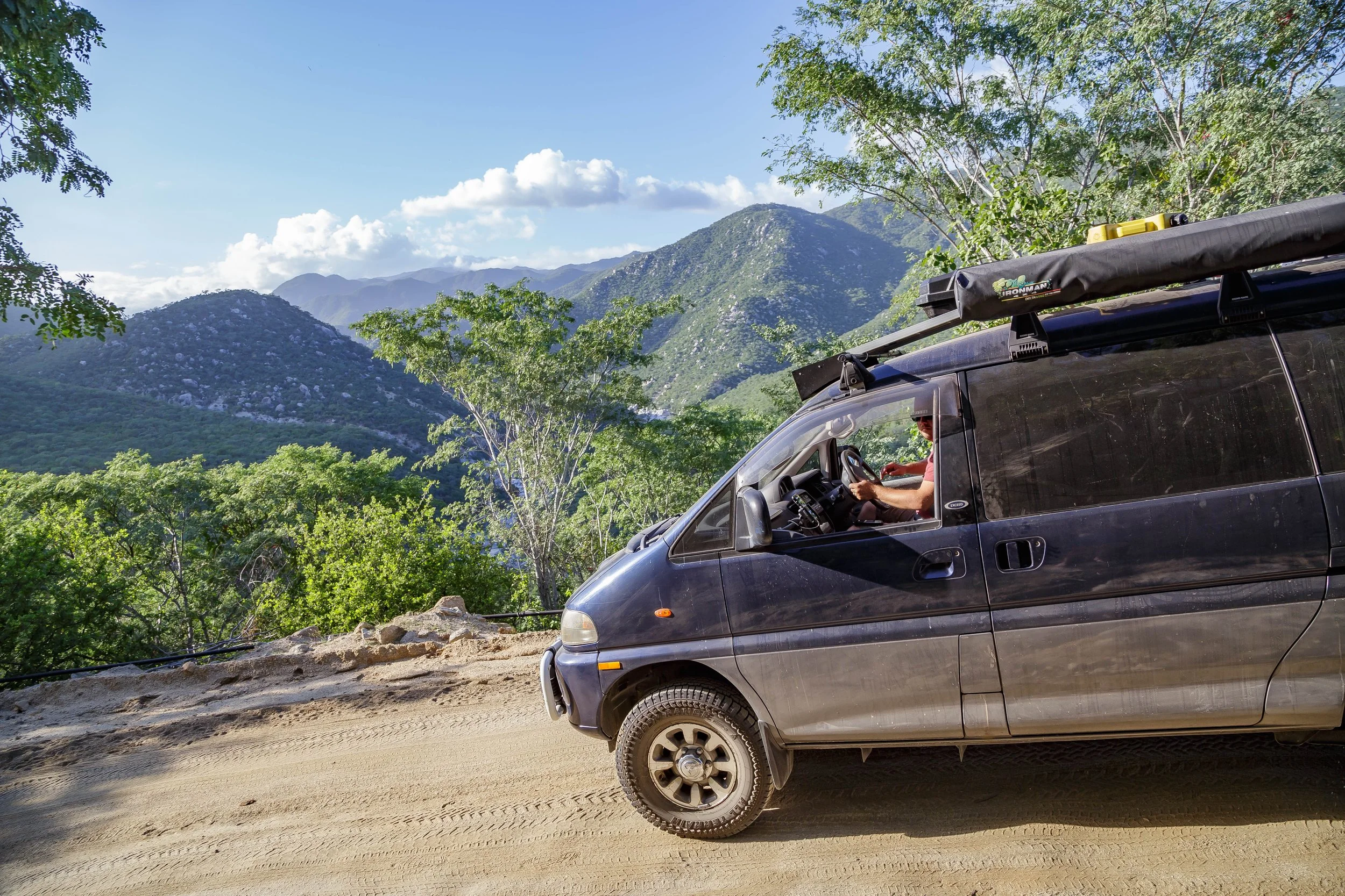 /Our second night of our two night stay in Hotel Casa Bonita was less stressful than the first - my painful cough was still present, but I was sucking down cough syrup as fast as I could, so sleep came slightly easier. My medico had told me the best I could do was manage symptoms and wait a week or two for the virus to pass, so that’s what I did. The next morning was easy, and we packed up quickly to make a 9AM meetup at a local empanada stand. Sam and Tyler, our friends from Idaho, had been invited to trade some photo work for a discounted van tour of southern Baja Sur, furnished by a Seattle-based tour company. They had flown into Cabo and were on a weeklong journey, with the duties of capturing images of the vans in idyllic camp spots and at local attractions along the way. Tyler’s brother Keith and his partner Katey had arranged the trip, as Katey works for the company. The original plan called for two vans, one for Katey and Keith, and one for Sam and Tyler, allowing for more vans in the photos and giving Sam vehicular autonomy to set up long distance shots and trail her drone as they collected footage, all while enjoying an experience very similar to the authentic product of renting a vintage VW Westfalia and driving it around the dirt roads of Baja. Unfortunately, Sam and Tyler’s van had lost a power steering seal two days into the trip, resulting in their van developing a slow leak that turned into a fast leak and culminated in an explosion of red ATF fluid all over a workshop in La Paz. While this was seen as a total bummer at the time, and meant that Sam and Tyler would be riding four-up with Katie and Keith for the remainder of the trip, I argue that there is no experience more authentic to van travel than a mechanical malfunction in a far away land, and the adjustment of expectations required to keep a trip moving.