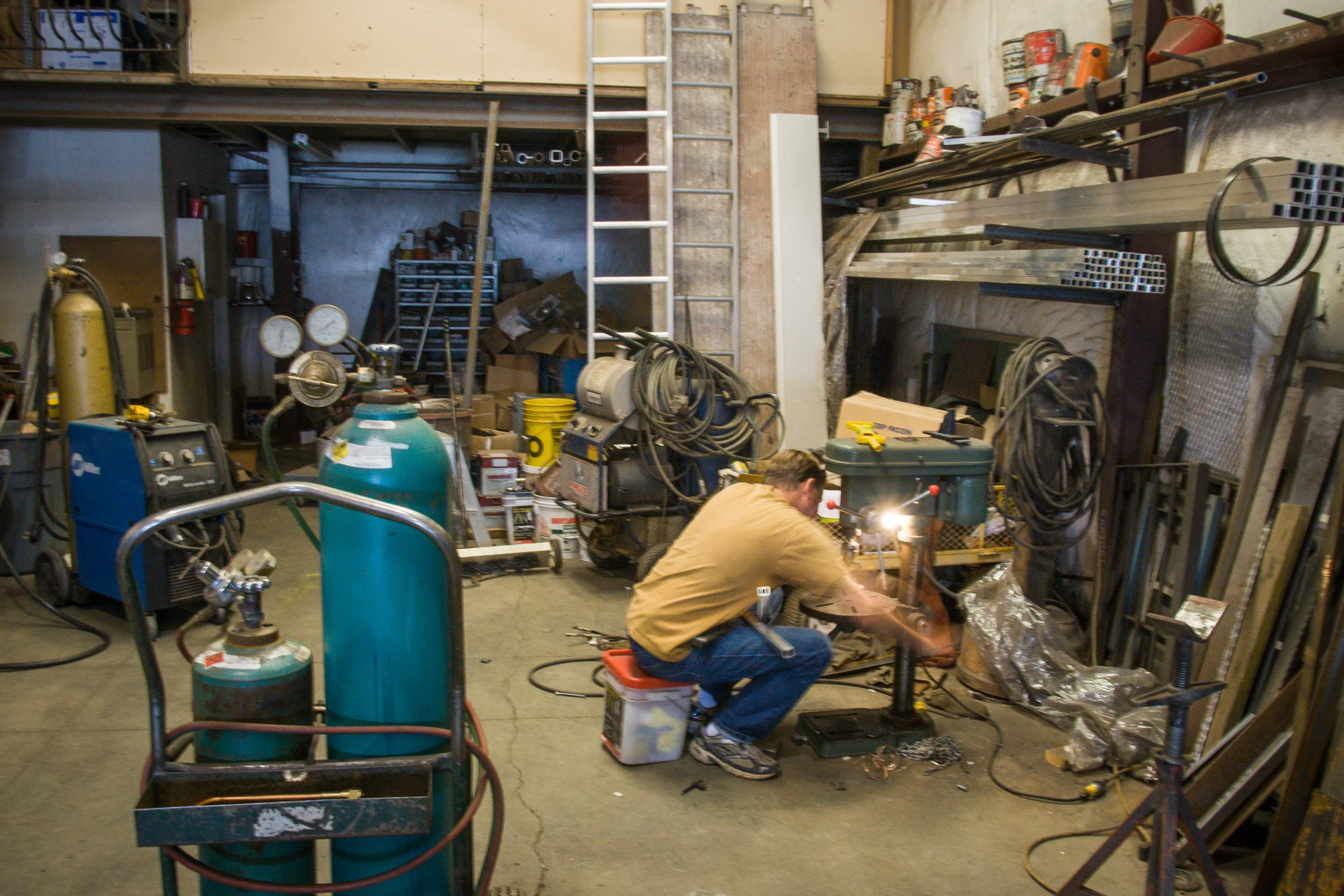 The first gallery shows the progression of our bed. For months it's been one sheet of plywood. We'd cut a second piece knowing our future plans, but hadn't had time to realize them. We found a local welder that was able to do some exact cutting work for us on the aluminum box below the bed to help facilitate the arm supports we'd wanted to swing out and support the center weight once the top half of the bed was attached to fold out.
